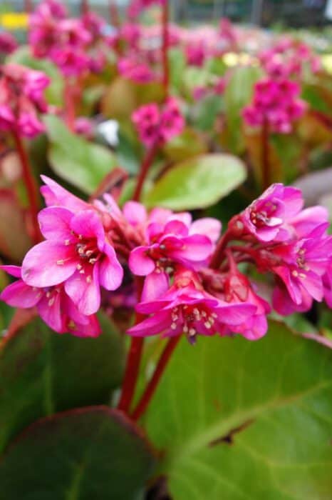 Bergenia cordifolia Eroica wordt in bloei staand ongeveer 45 cm hoog.