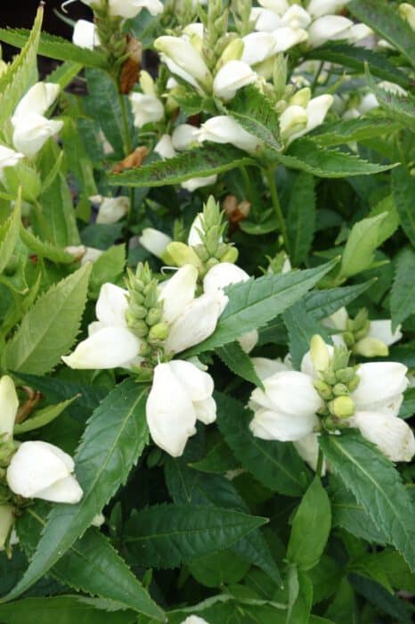Schildpadbloem of Chelone obliqua Alba is een langbloeiende plant met witte bloemen en glanzend groen blad.