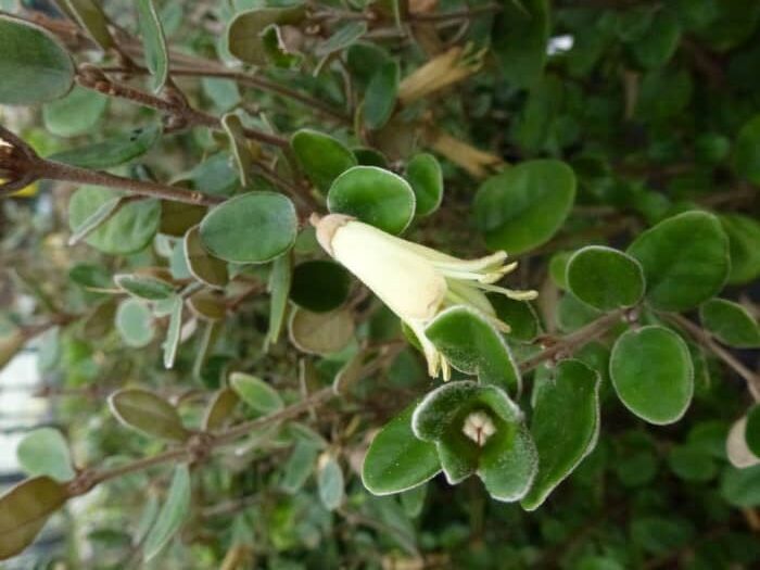 Correa backhouseana of Australische Fuchsia is een groenblijvende bloeiende heester met glanzend donkergroen blad en lichtgele/ groene bloemen.