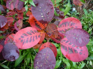 De rode pruikenboom heeft rood/ paars blad, wat in het najaar mooie oranje bruine kleuren krijgt. Eind november verliest de struik zijn blad. De takken zijn geschikt om in een bloemenboeket te gebruiken.