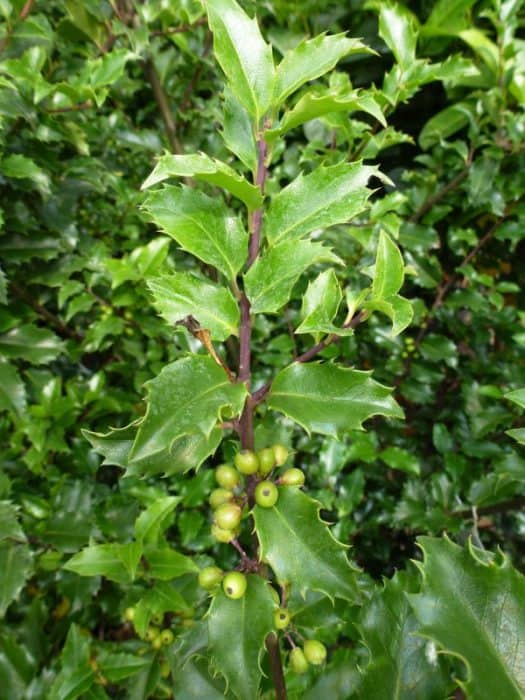 Ilex meserveae Blue Princess of Blauwe Hulst heeft blauwgroen glanzend blad en veel rode bessen en is geschikt om als haag aan te planten. Lees hier over de standplaats, verzorging en snoei van Hulst.