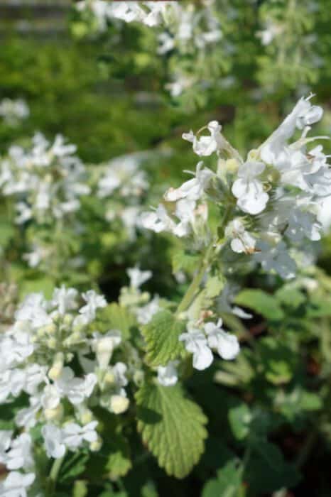 Deze winterharde plant bloeit rijk en langdurig met witte bloemen. De naam kattenkruid geeft al aan dat katten gek op deze plant zijn. Ze knabbelen er wel eens aan en vinden het prettig om er in te liggen en te rollen. Behalve katten trekt deze plant ook veel vlinders en bijen naar de tuin. De plant wordt ongeveer 30 cm hoog en is goed geschikt als randplant. Deze bloeiende bodembedekker kan ook goed als vakbeplanting toegepast worden en als kuipplant op balkon of terras.