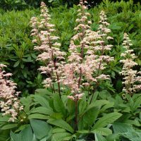 Rodgersia pinnata bloeit van mei t/m juli met prachtig grote bloempluimen in de kleuren roze of wit. Het is een rijke bloeier. Door uitgebloeide bloemen te verwijderen stimuleer je doorbloei.