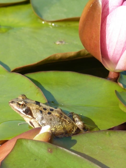 Wij hebben een grote vijver in onze tuin, waar windes en goudvissen in zwemmen. De vissen zorgen ervoor dat we geen last hebben van muggen. De vijver trekt veel vogels, die komen drinken of badderen. Verder zitten er veel padden en kikkers in onze tuin, waar reigers dan weer op af komen. De vissen kunnen veilig schuilen onder de brug, zodat we niet met een net hoeven te werken. In de zomer is er ruimte genoeg om te schuilen onder de waterlelie bladeren.