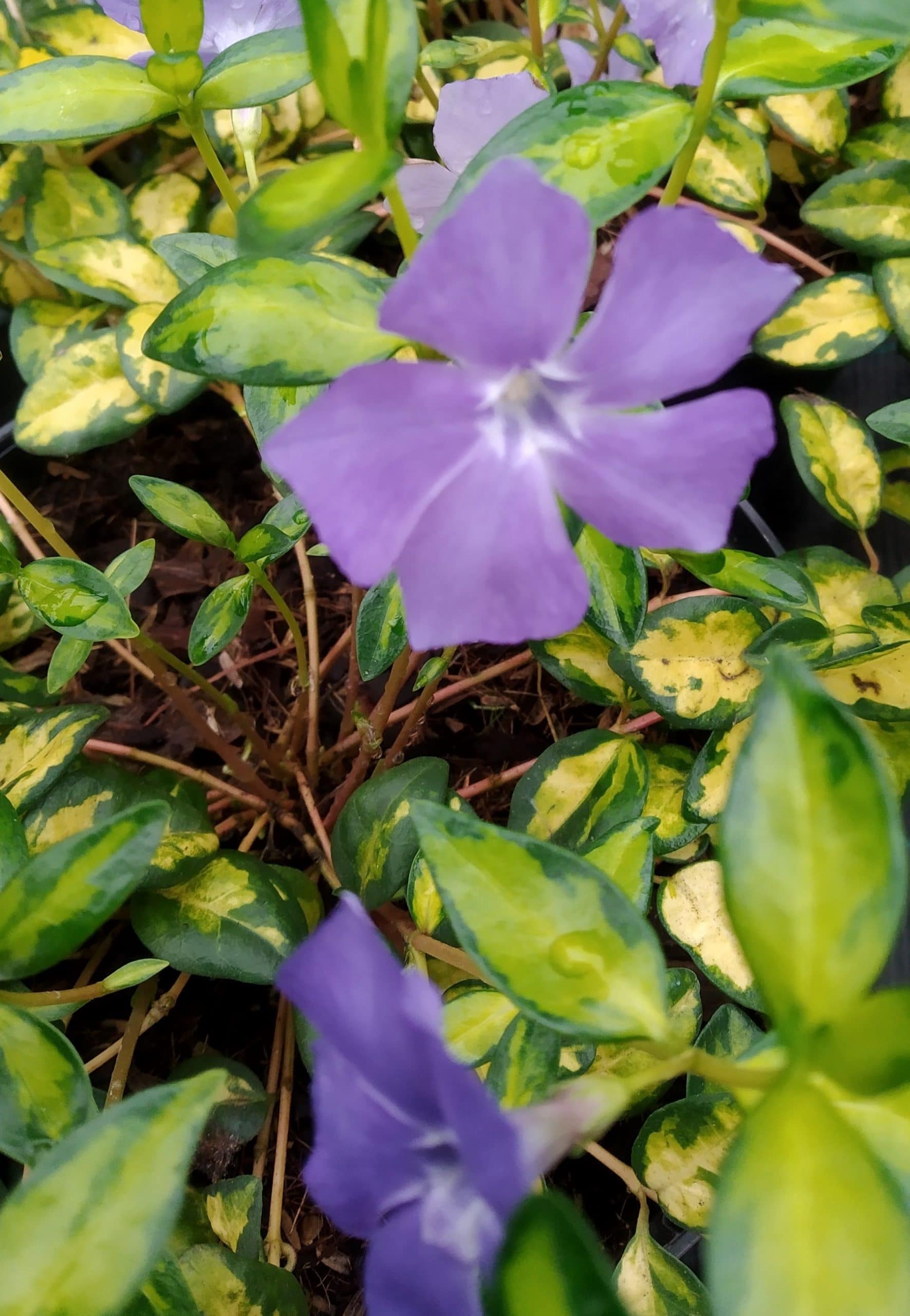 Vinca minor Illumination is een bodembedekker die goed past in de onderhoudsarme tuin. Het plantje wordt ongeveer 15 cm hoog en groeit breed uit en maakt lange uitlopers die weer nieuwe wortels vormen. Zo wordt al snel een bodem bedekkend tapijt gevormd, zodat onkruid een stuk minder kans krijgt om aan te slaan.